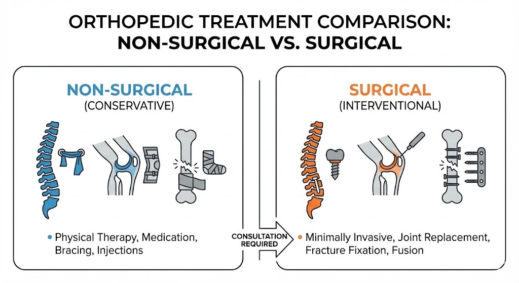 🦴 কোন ক্ষেত্রে অপারেশন ছাড়াই চিকিৎসা সম্ভব?